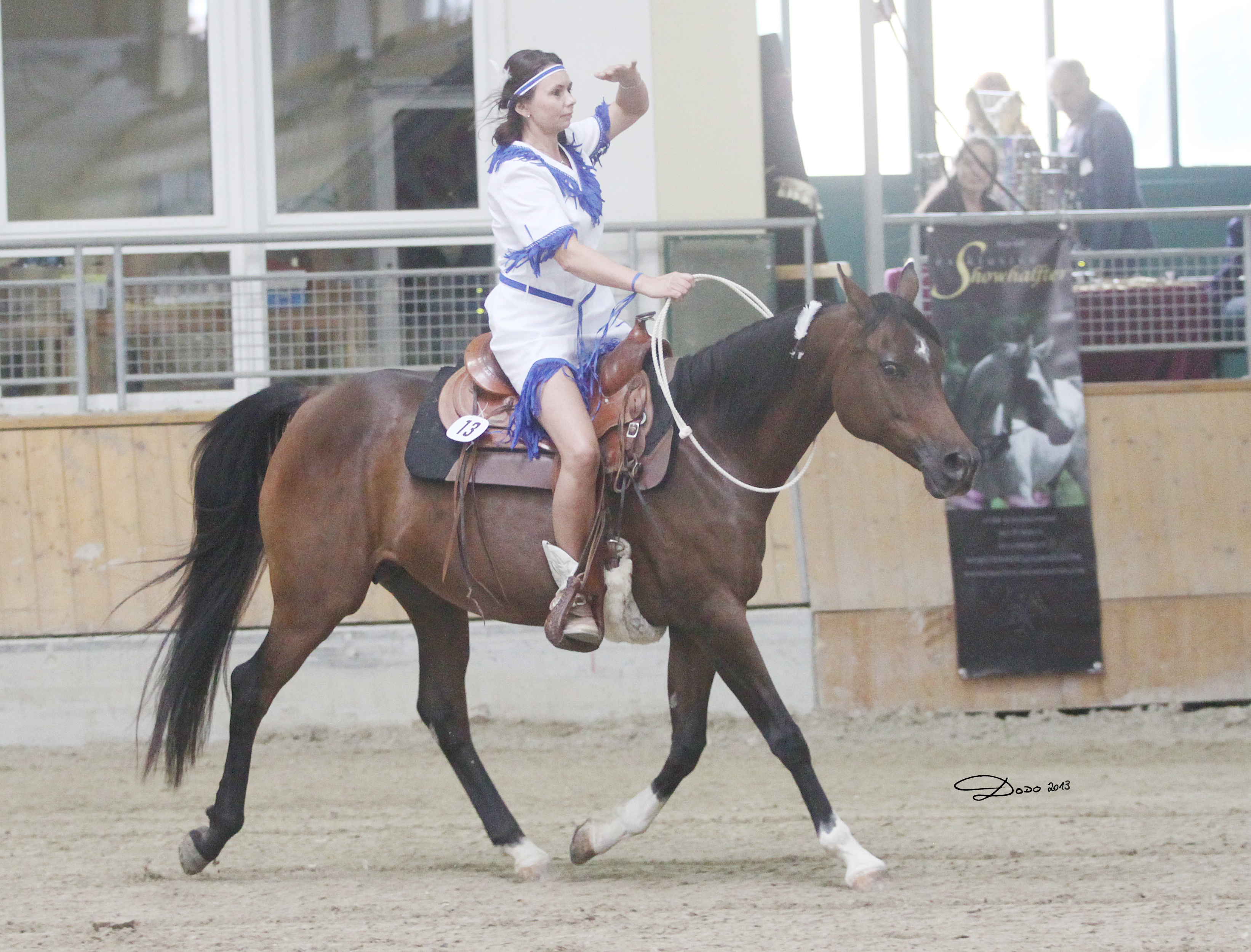 Beim 4. Araber Sommerfestival 2013 stellte das Steindler Arabians Team gleich 4 Pferde vor. Christine Steindler stellte ein Highlight mit einer Freestyle Reining mit Moldavia und dem kleinen Fohlen Makalu dar.